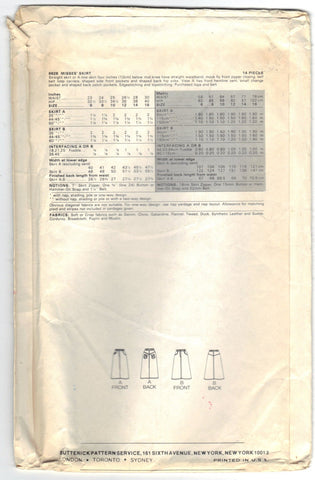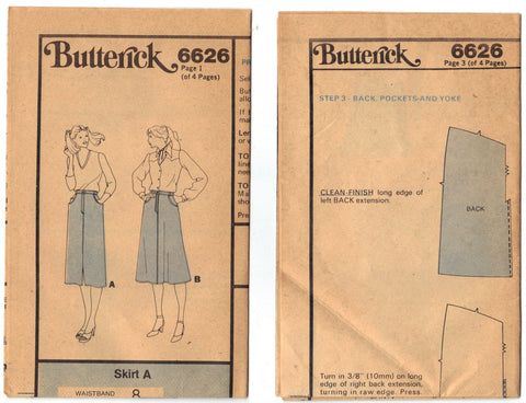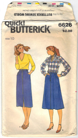 Butterick 6626 Pattern Quick 'Misses' Skirt Size 10: Straight skirt or A-line skirt four inches (10cm) below mid-knee have straight waistband, mock fly front zipper closing, self belt loop carriers, shaped side front pockets and shaped back hip yoke. View A has front hemline vent, small change pocket and shaped back patch pockets. Edgestitching and topstitching. Purchased tops and belt." You can make your own denim skirt; if you choose! This is an 'As Is' purchase.