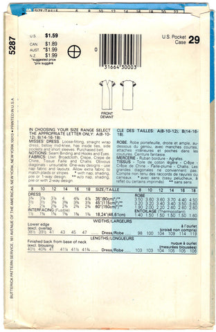 Butterick See and Sew 5287 Pattern Vintage Misses Dress
