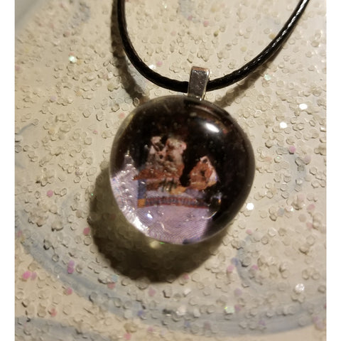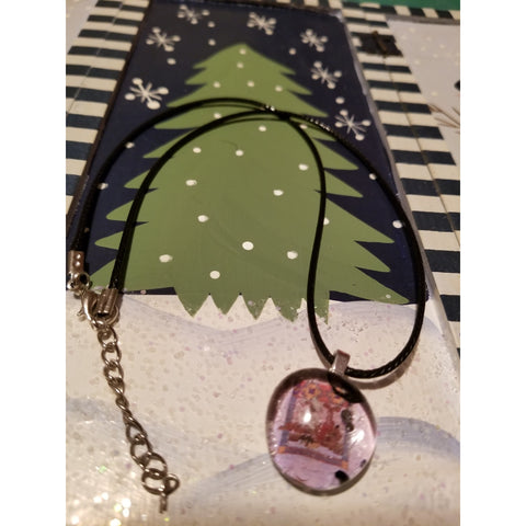 Cute Colorful Scenery Handmade Glass Marble Necklace (some crackling ... help give glittering effect, when light hits/shines on it). Flat Back Glass Marble. Approximately, 3/4 inch to under one inch circumference (please, see photos). Looking for unique, handmade, inexpensive; but, wearable, jewelry ... well, you came to the right place. Marble on black 18 inch waxed cotton cord chain with extender. Silver bail. IF AVAILABLE, can try to replace with 24 inch cord (cannot guarantee). Although, anyone can wear ... made with young ladies/girls, in mind. My daughters, their friends, etc., love them. My friends, and I, wear, also ...😉!