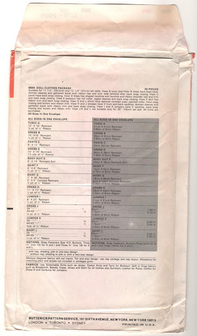 Butterick 6664 Pattern Vintage Personality Fashion Doll Wardrobe