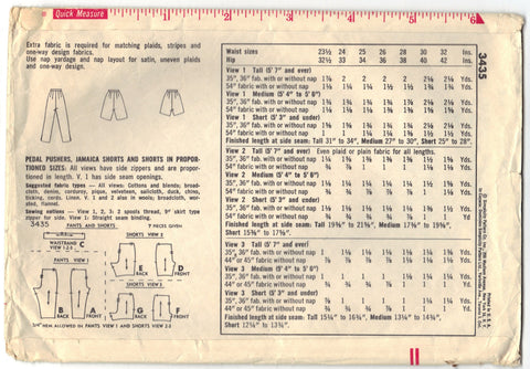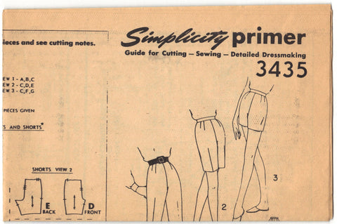 Simplicity 3435 Pattern Vintage Pedal Pushers & Shorts