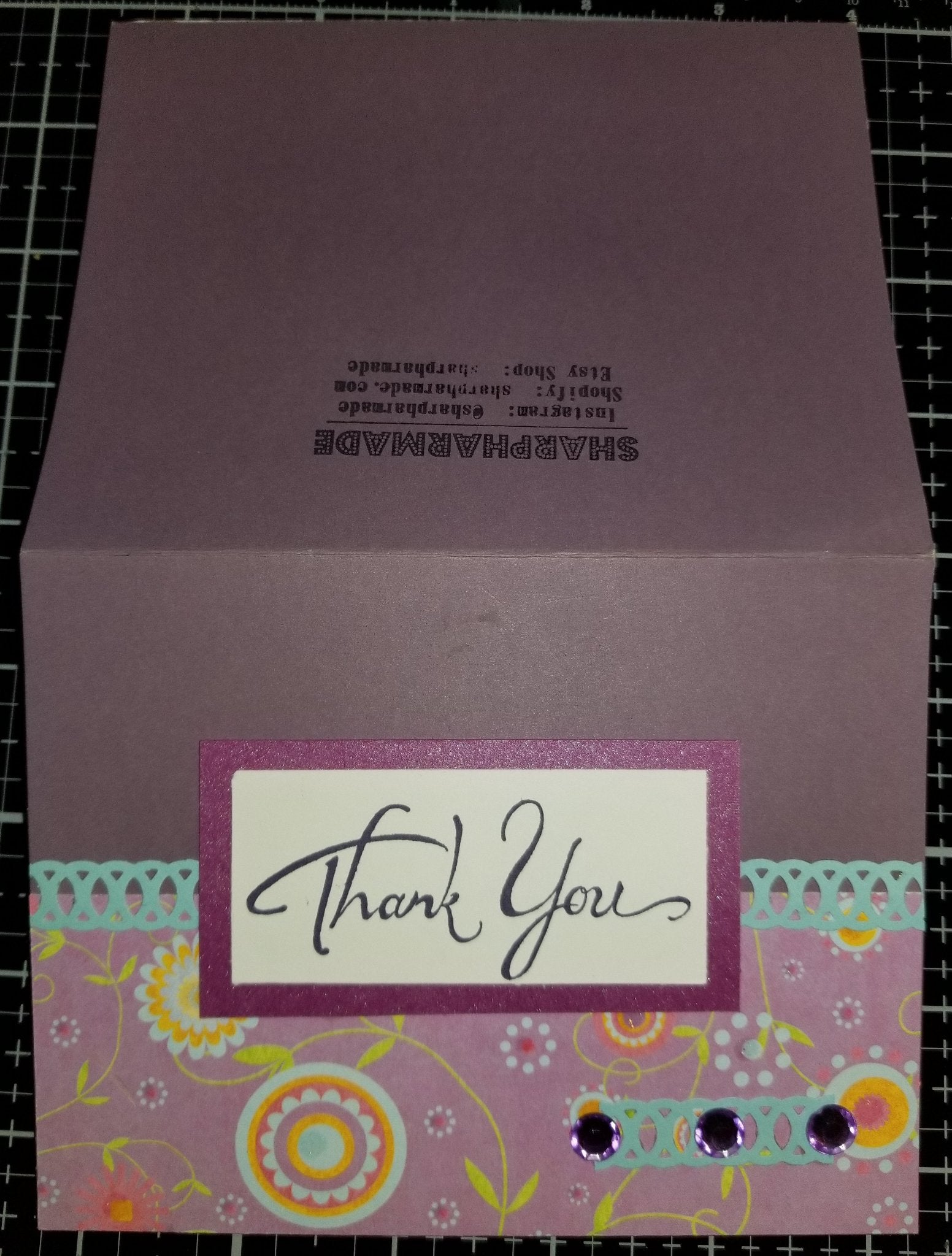 Thank You Handmade Greeting Card Sku #THANKYOU9152018. Inside of card is blank, allowing plenty of room for your own personal note, or message. Add pictures, etc. Or, if you want me to add a special 'theme' message, no extra expense to you (e.g. Happy Mother's Day, Happy Spring, Happy Easter, etc.). Card is approximately 5.5 x 4.25 inches, as is (please, see photos).