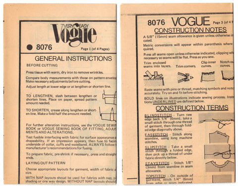 Copyright 1980's (Estimated Guess). Vogue Pattern Service. Printed in U.S.A.