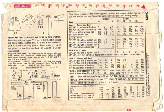 Simplicity 3483 Pattern Vintage Junior And Misses Blouse And Skirt In Two Lengths